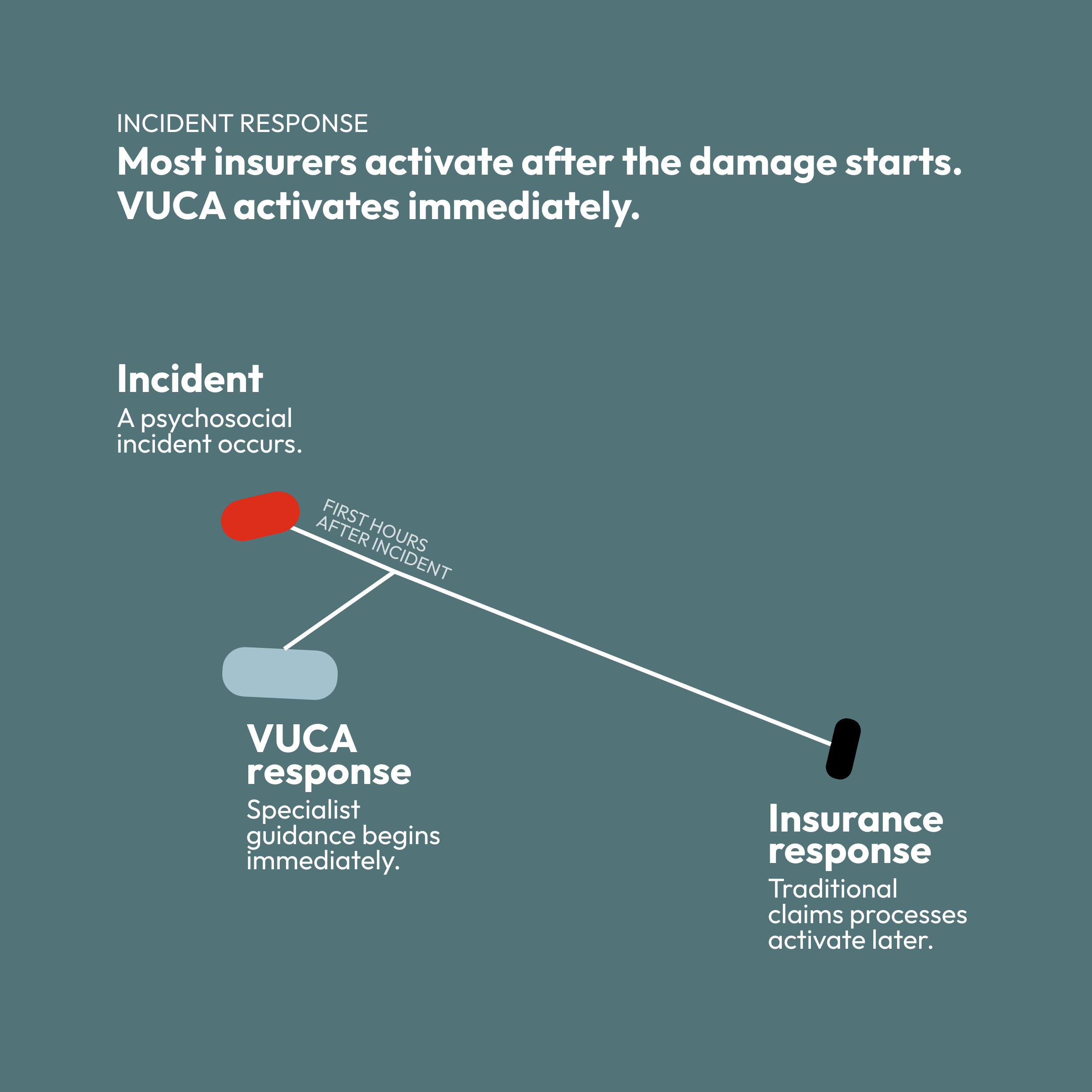 VUCA provides the intelligence, response capacity and insurance escalation needed when incidents become real.